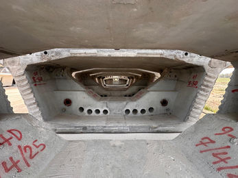 הבנייה בעיצומה! רוב מקטעי הטרום של שני הגשרים כבר נמצאים באתר. מבנה התשתית כמעט גמור.
